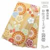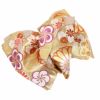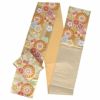 振袖にお使いいただける、西陣織お仕立て上り袋帯です。 ゴールドの地色に、オレンジ色の万寿菊や紫色のねじ梅等が映える豪華なデザインで美しい装飾が帯全体を彩ります。 ねじり桜の中にも花や鹿の子など、煌びやかな文様が入れ込まれており、振袖姿に華を添えます。 レトロ、古典などの振袖から現代風のモダンな振袖にもマッチする可愛らしいデザインです。 帯は伝統工芸の西陣織にて仕立てられており、染められた糸を複雑に織って模様を作るので、完成までに多数の工程があり、とても手間暇がかかる高級絹織物です。 こうして丁寧に織られた生地は、先染めしてから織っているので、一般的な染色法の後染めより丈夫でシワになりにくいのが特徴です。 正絹の帯には、金糸をふんだんに使用しており、魅入ってしまうほどの美しい輝きが魅力的。 光の当たり方で、絹の柔らかな光沢や金糸が反射し、豪華絢爛な帯がお楽しみいただけます。 絹の質感と光沢、大胆で鮮麗な柄が、大切なお祝いの席を華やかに演出してくれるでしょう。 結婚式やパーティーでの振袖はもちろん、一度きりの成人式に相応しい豪華な逸品です。