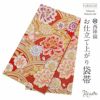 振袖にお使いいただける、西陣織お仕立て上り袋帯です。 鮮やかな赤の帯地に煌びやかなゴールドで青海波が、紫・水色・ピンクなどで牡丹や花々が色彩豊かに描かれ帯元を華やかに演出します。 贅沢に使用された金糸の美しい輝きが帯周りを豪華に彩り、大切な日の振袖姿に華を添えます。 王道のスタイルからレトロ、モダンスタイルまで合わせやすく、様々なコーディネートがお楽しみいただけますよ。 帯は伝統工芸の西陣織にて仕立てられており、染められた糸を複雑に織って模様を作るので、完成までに多数の工程があり、とても手間暇がかかる高級絹織物です。 こうして丁寧に織られた生地は、先染めしてから織っているので、一般的な染色法の後染めより丈夫でシワになりにくいのが特徴です。 光の当たり方で、絹の柔らかな光沢が反射し、艶やかな帯がお楽しみいただけます。 絹の質感と光沢、大胆で鮮麗な柄が、大切なお祝いの席を華やかに演出してくれるでしょう。 結婚式やパーティーでの振袖はもちろん、一度きりの成人式に相応しい豪華な逸品です。