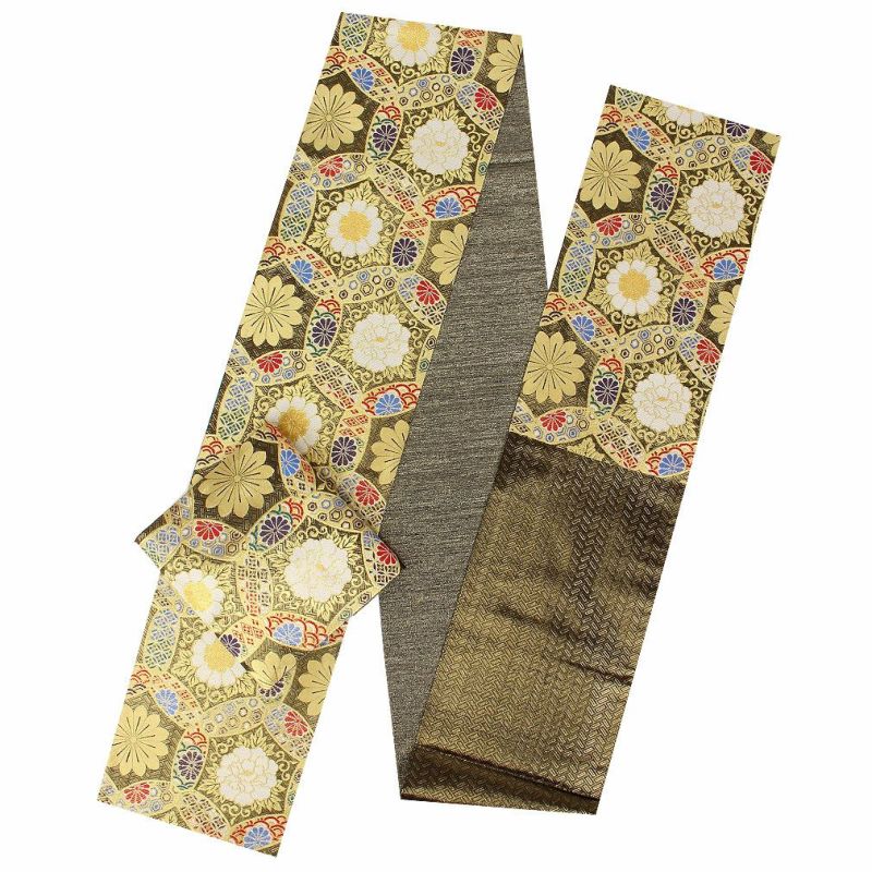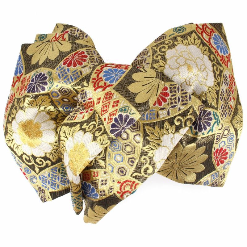 振袖 帯 袋帯 成人式 < 黒 ゴールド / 華紋 > 西陣織 < 佐々木染織物 > 仕立て上がり