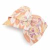 振袖にお使いいただける、西陣織お仕立て上り袋帯です。 鮮やかな色彩の矢絣や丸紋が描かれ帯元を華やかに演出します。 金糸をふんだんに使用しており、ゴールドの輝きが帯周りを上品で煌びやかに彩り、振袖姿に華を添えます。 帯は伝統工芸の西陣織にて仕立てられており、染められた糸を複雑に織って模様を作るので、完成までに多数の工程があり、とても手間暇がかかる高級絹織物です。 こうして丁寧に織られた生地は、先染めしてから織っているので、一般的な染色法の後染めより丈夫でシワになりにくいのが特徴です。 光の当たり方で、絹の柔らかな光沢が反射し、艶やかな帯がお楽しみいただけます。 絹の質感と光沢、大胆で鮮麗な柄が、大切なお祝いの席を華やかに演出します。 結婚式やパーティーでの振袖はもちろん、一度きりの成人式に相応しい豪華な逸品です。