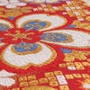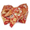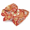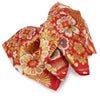 振袖にお使いいただける、西陣織お仕立て上り袋帯です。 華やかな色遣いの華紋や鹿の子などが帯全体を彩られており、晴れの日にピッタリのデザインです。 帯は伝統工芸の西陣織にて仕立てられており、染められた糸を複雑に織って模様を作るので、完成までに多数の工程があり、とても手間暇がかかる高級絹織物です。 こうして丁寧に織られた生地は、先染めしてから織っているので、一般的な染色法の後染めより丈夫でシワになりにくいのが特徴です。 正絹の帯には、金糸をふんだんに使用しており、魅入ってしまうほどの美しい輝きが魅力的。 光の当たり方で、絹の柔らかな光沢や金糸が反射し、豪華絢爛な帯がお楽しみいただけます。 絹の質感と光沢、大胆で鮮麗な柄が、大切なお祝いの席を華やかに演出してくれるでしょう。 結婚式やパーティーでの振袖はもちろん、一度きりの成人式に相応しい豪華な逸品です。