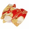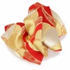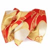 振袖にお使いいただける、西陣織お仕立て上り袋帯です。 華やかな赤の地色に、ゴールドの八重梅が咲き誇り帯元を華やかに演出します。 存在感ある八重梅には金銀糸をふんだんに使用して柄付けされており、煌びやかで晴れの日に相応しい帯です。 王道の赤×ゴールドカラーで振袖姿を美しく彩ります。 レトロからクラシカル、個性派スタイルによく合い、様々なコーディネートがお楽しみいただけますよ。 帯は伝統工芸の西陣織にて仕立てられており、染められた糸を複雑に織って模様を作るので、完成までに多数の工程があり、とても手間暇がかかる高級絹織物です。 こうして丁寧に織られた生地は、先染めしてから織っているので、一般的な染色法の後染めより丈夫でシワになりにくいのが特徴です。 光の当たり方で、絹の柔らかな光沢が反射し、艶やかな帯がお楽しみいただけます。 絹の質感と光沢、大胆で鮮麗な柄が、大切なお祝いの席を華やかに演出してくれるでしょう。 結婚式やパーティーでの振袖はもちろん、一度きりの成人式に相応しい豪華な逸品です。