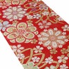 成人式や結婚式、振袖にお使いいただける、西陣織お仕立て上り袋帯です。 鮮やかな赤地に織り込まれた華紋とリボンは、華やかでありながら古風な雰囲気を持ち合わせ、どんな振袖にもお洒落なアクセントを加えます。 帯は伝統工芸の西陣織にて仕立てられており、染められた糸を複雑に織って模様を作るので、完成までに多数の工程があり、とても手間暇がかかる高級絹織物です。 こうして丁寧に織られた生地は、先染めしてから織っているので、一般的な染色法の後染めより丈夫でシワになりにくいのが特徴です。 綿密に織られた西陣織は糸数も多く、ぐっと締まって緩みにくいので、着姿もしゃんと背筋が伸びます。 絹の帯には、金糸を使用しており、魅入ってしまうほどの美しい輝きが魅力的。 光の当たり方で、絹特有の柔らかな光沢や金銀糸が反射し、高級感あふれる美しい帯がお楽しみいただけます。 絹の質感と光沢、大胆で鮮麗な柄が、大切なお祝いの席を華やかに演出してくれるでしょう。 結婚式やパーティーでの振袖はもちろん、一度きりの成人式に相応しい豪華な逸品です。