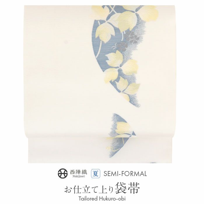 他の画像を見る 《お仕立て上り》【最短日お届け】夏 結婚式の黒留袖 色留袖や訪問着に 夏袋帯 袋帯 夏帯 フォーマル 夏留袖 夏訪問着 アイボリー 水色 リーフ 絽 京都イシハラ織物 西陣織 仕立て上がり 新品 未使用 正絹 当店特別価格 ¥ 33,000 税込 (0) お気に入りに登録する