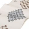 届いて直ぐに使える夏用のお仕立て上がりの袋帯です。 京都西陣で織り上げられ、西陣織の証紙が付いた品質確かな逸品。 絹糸で織られた本商品はしなやかな手触りで締め心地が良く、通気性も優れており初夏から初秋までご利用になれます。 爽やかな白の帯地に茶系・青系のモザイク菱の模様を織り込んだ上品な印象の袋帯です。 夏のお洒落訪問着や付け下げ、色無地など幅広くご利用いただけます。 上品で涼やかな夏のお着物にふさわしい袋帯。 ちょっとしたお出掛けにお勧めの商品です。 本商品はたれ先から前腹まで柄が織り込んでおりますので、帯結びが苦手な方にも結びやすく、着物初心者の方でも柄出しを気にせず気軽に結んでいただけます。