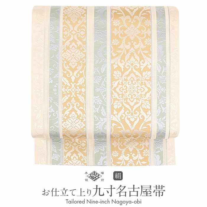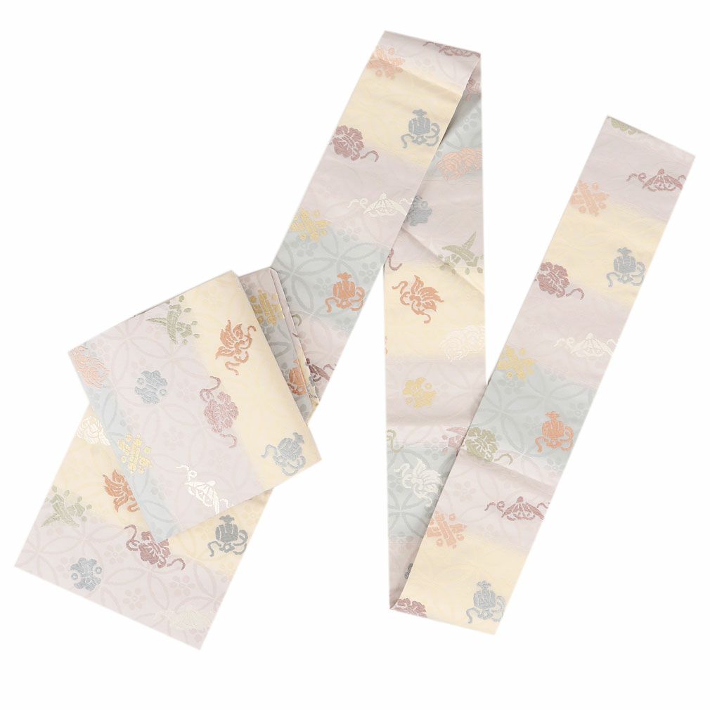 他の画像を見る 《お仕立て上り・送料込》【最短日お届け】お稽古や小紋・紬・色無地などカジュアルな着物に アウトレット 名古屋帯 薄紫 薄黄 青 九寸 帯 < 縞に宝尽くし > 西陣 橋本テル織物 唐織 正絹 仕立て上がり 全通柄 当店特別価格 ¥ 35,200 税込 カートに入れる お気に入りに登録する
