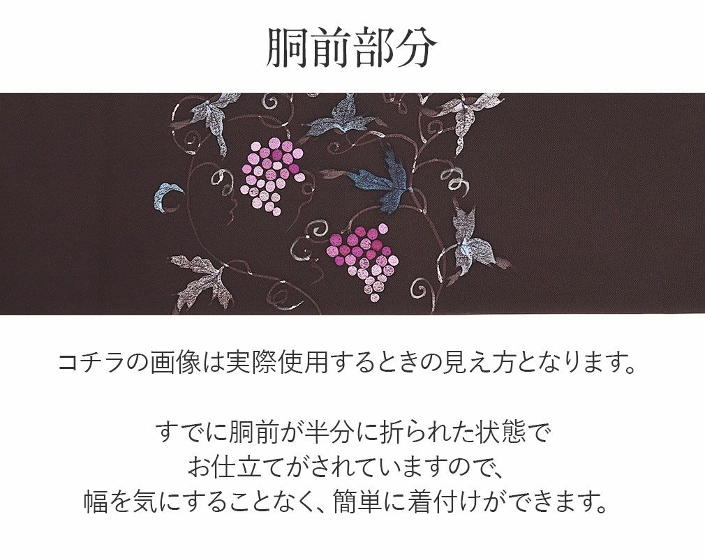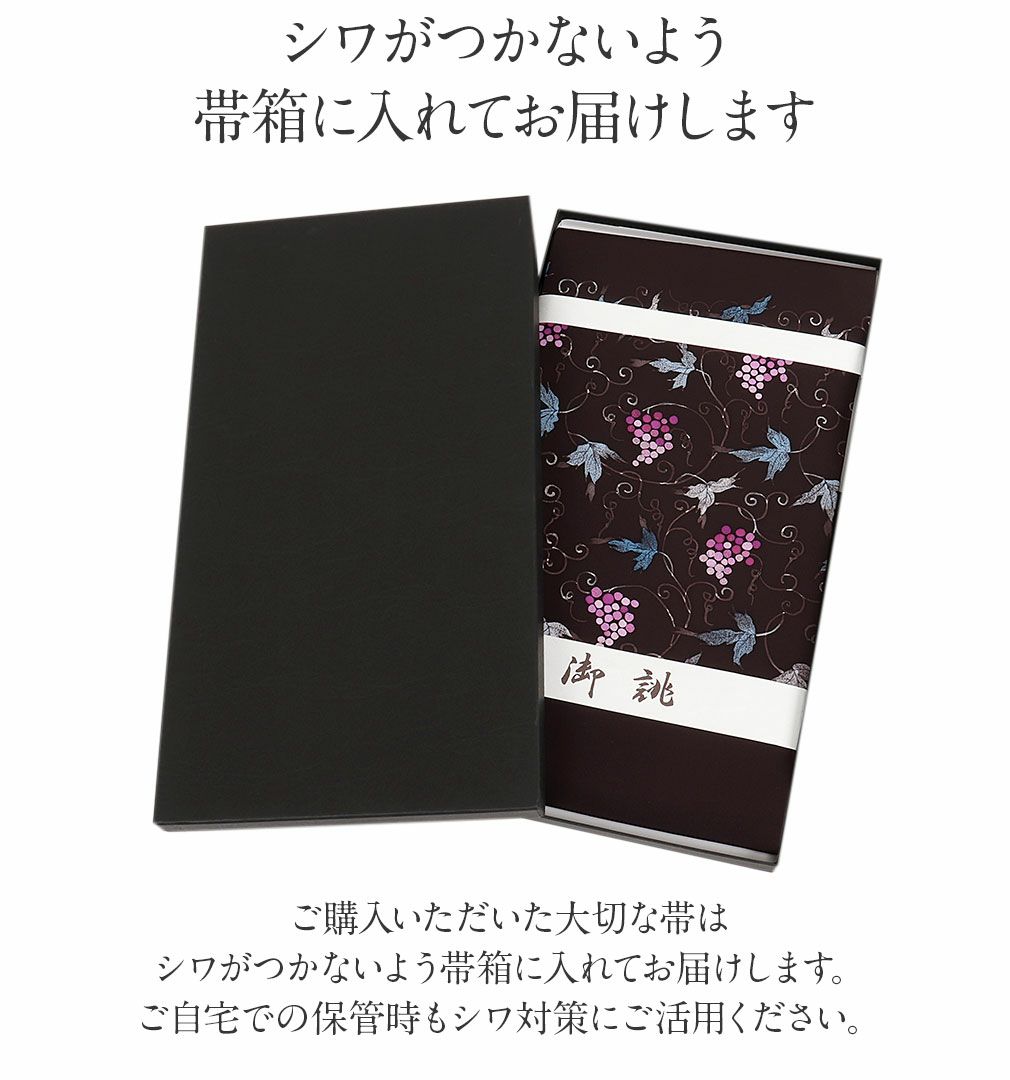 他の画像を見る 《お仕立て上り・送料込》【最短日お届け】お稽古や小紋・紬・色無地などカジュアルな着物に 名古屋帯 帯 九寸 <黒/葡萄> 西陣 辻梅機業店織物 正絹 お仕立て上がり 六通柄 当店特別価格 ¥ 38,500 税込 カートに入れる お気に入りに登録する