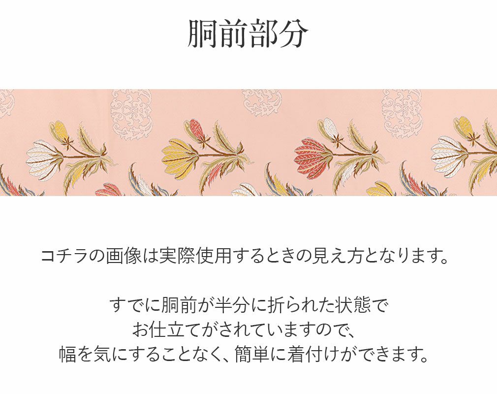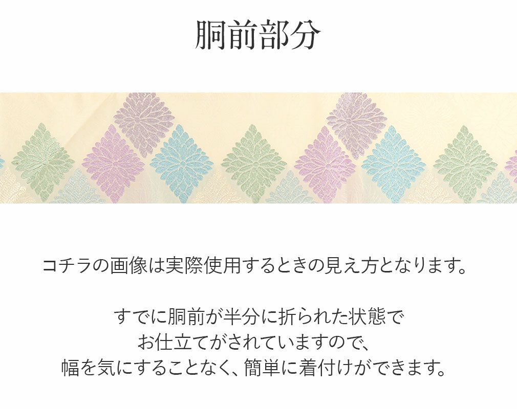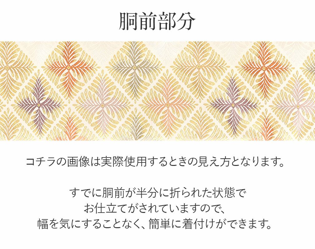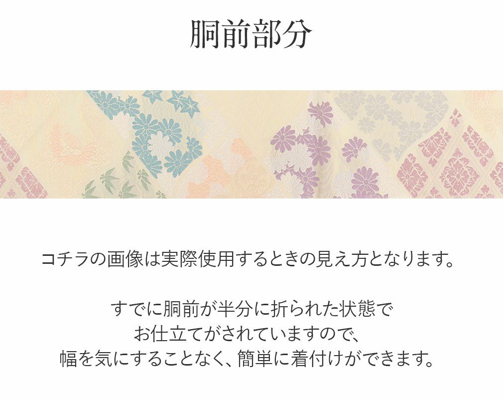 他の画像を見る 《お仕立て上り・送料込》【最短日お届け】お稽古や小紋・紬・色無地などカジュアルな着物に 名古屋帯 九寸 帯 <唐花> 浜ちりめん 正絹 純絹織物 仕立て上がり お太鼓柄 当店特別価格 ¥ 74,800 税込 カートに入れる お気に入りに登録する