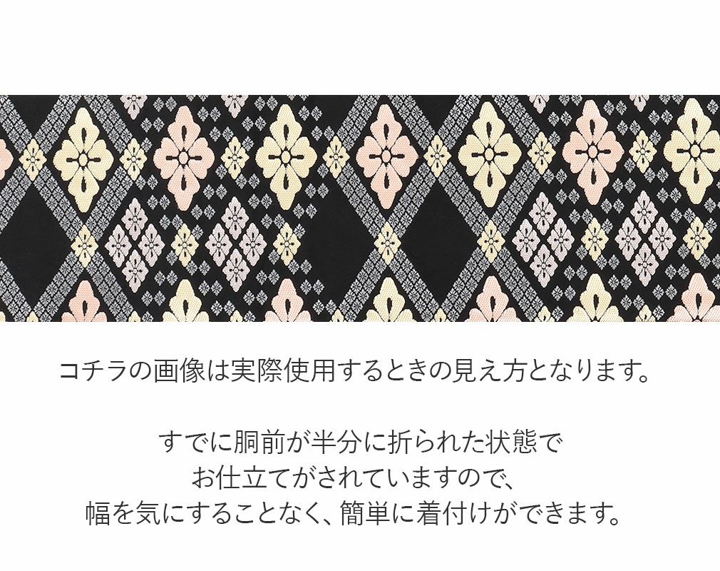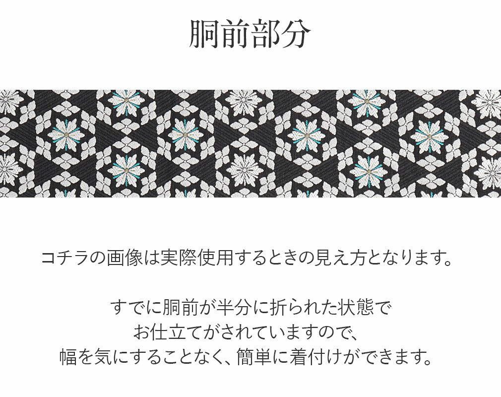 他の画像を見る 《お仕立て上り・送料込》【最短日お届け】お稽古や小紋・紬・色無地などカジュアルな着物に 名古屋帯 帯 九寸 <黒/花菱> 織善織物 正絹 お仕立て上がり 六通柄 当店特別価格 ¥ 38,500 税込 カートに入れる お気に入りに登録する