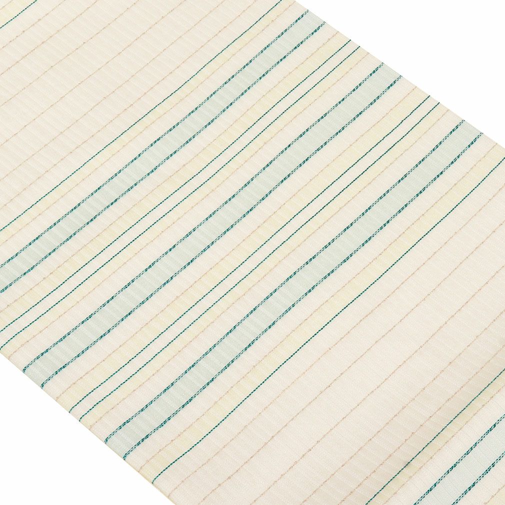 他の画像を見る 《お仕立て上り・送料込》【最短日お届け】夏の小紋 紋紗 色無地 御召 などのお着物に 夏帯 名古屋帯 博多帯 博多織 夏名古屋帯 夏帯 帯 八寸 松葉仕立て 薄緑 紺 縞 流水 紗窓 筑前織物 紗 正絹 仕立て上がり 夏博多 当店特別価格 ¥ 93,500 税込 カートに入れる お気に入りに登録する