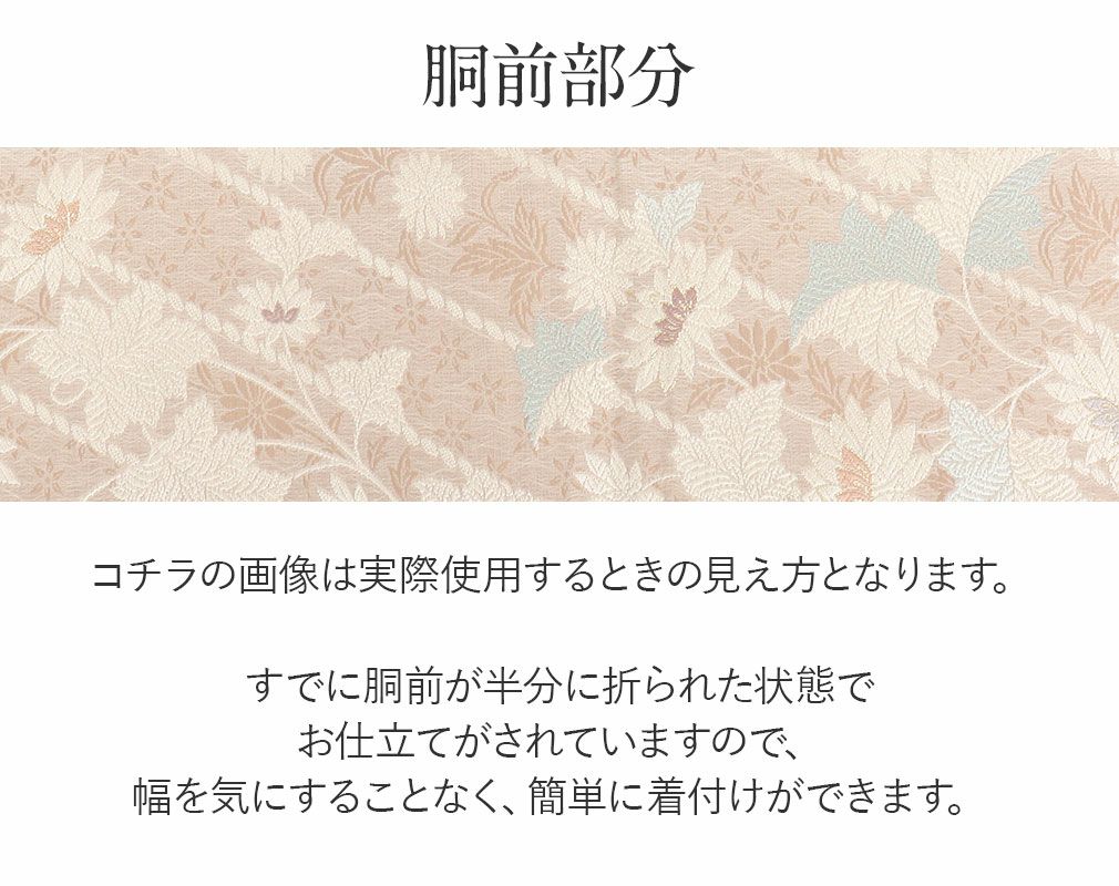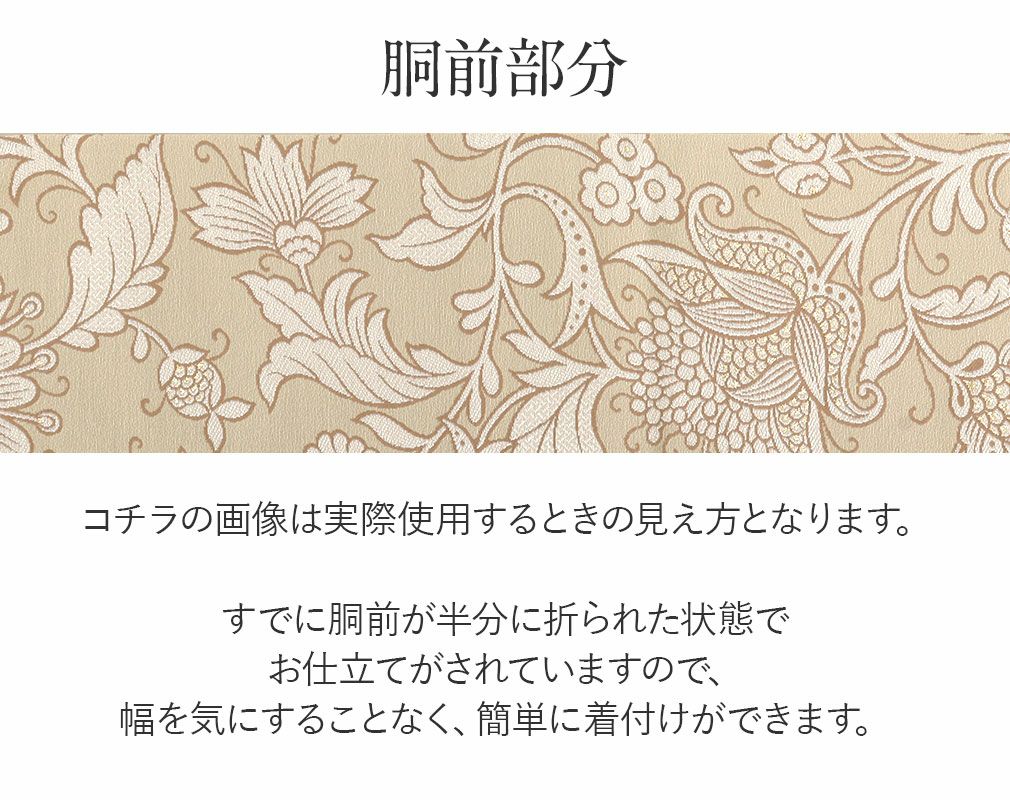 他の画像を見る 《お仕立て上り・送料込》【最短日お届け】小紋 紬 色無地 御召 などのお着物に 名古屋帯 薄ベージュ 花唐草 廣部織物 普段用 九寸 仕立て上がり 絹 当店特別価格 ¥ 27,500 税込 カートに入れる お気に入りに登録する