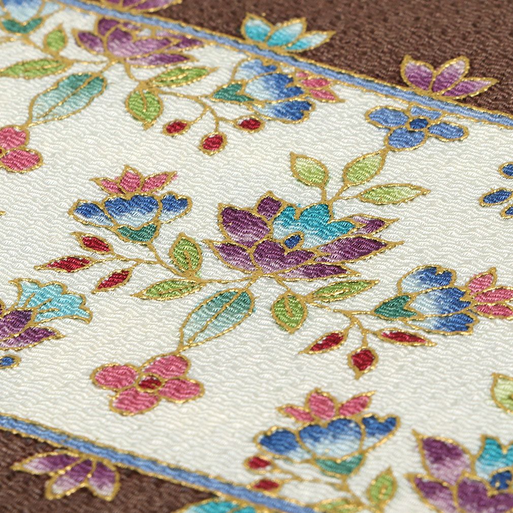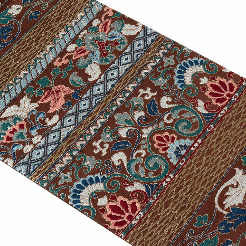 他の画像を見る 《お仕立て上り・送料込》【最短日お届け】お稽古や小紋・紬・色無地などカジュアルな着物に 名古屋帯 茶色 九寸 帯 唐草 西陣織 < 弥栄織物 > お仕立て上がり 6通柄 正絹 当店特別価格 ¥ 29,700 税込 カートに入れる お気に入りに登録する