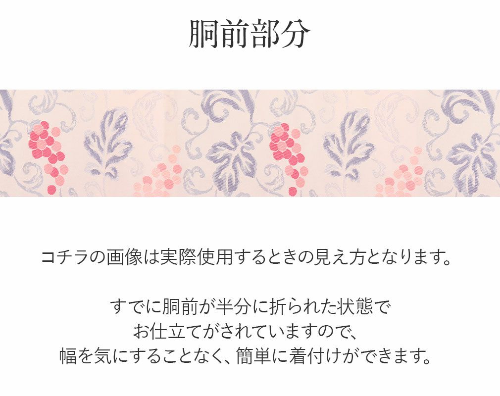 他の画像を見る 《お仕立て上り・送料込》【最短日お届け】お稽古や小紋・紬・色無地などカジュアルな着物に 名古屋帯 薄ピンク 九寸 帯 ぶどう 西陣織 < 山田織物 > お仕立て上がり 6通柄 正絹 当店特別価格 ¥ 41,800 税込 カートに入れる お気に入りに登録する
