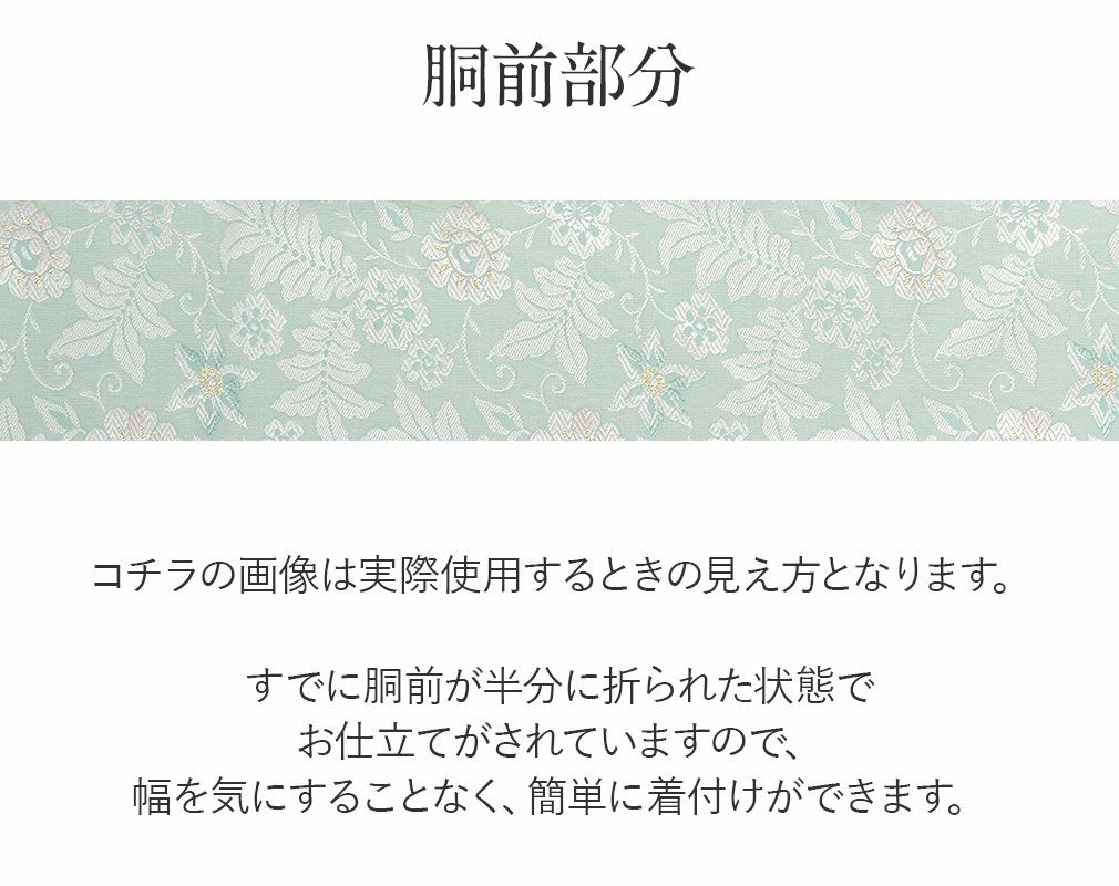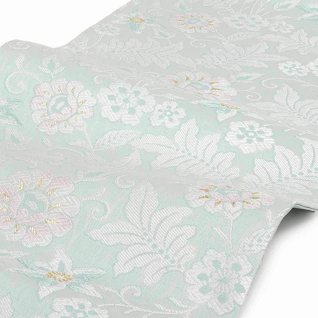 他の画像を見る 《お仕立て上り・送料込》【最短日お届け】お稽古や小紋・紬・色無地などカジュアルな着物に 名古屋帯 水色 九寸 帯 唐花 小花 西陣織 < 弥栄織物 > お仕立て上がり 6通柄 正絹 当店特別価格 ¥ 29,700 税込 カートに入れる お気に入りに登録する