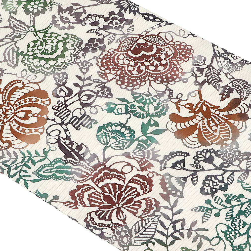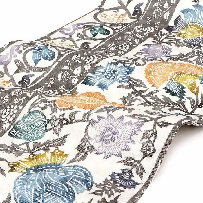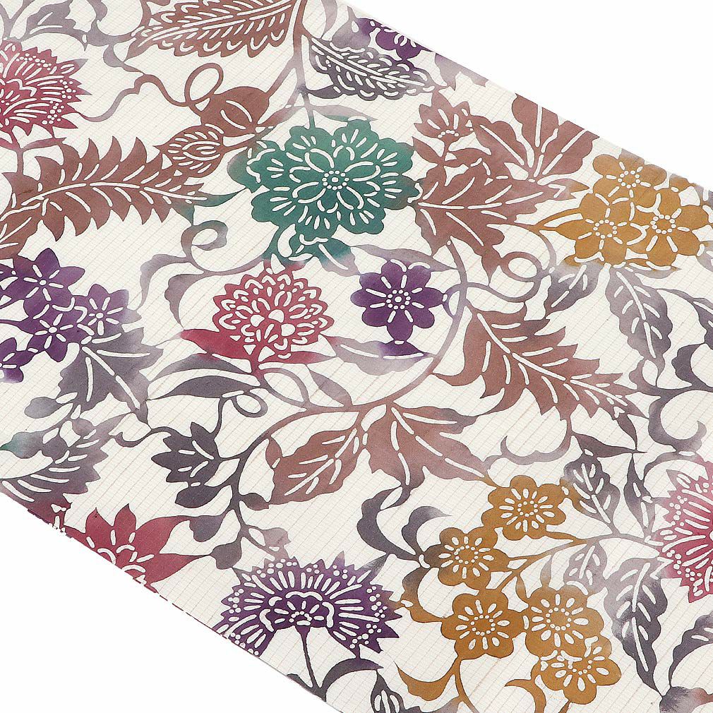 他の画像を見る 《お仕立て上り・送料込》【最短日お届け】お稽古や小紋・紬・色無地などカジュアルな着物に 名古屋帯 生成り 九寸 帯 <唐草 更紗花丸> 江戸紅型 紅型 東京染 当店特別価格 ¥ 77,000 税込 カートに入れる お気に入りに登録する