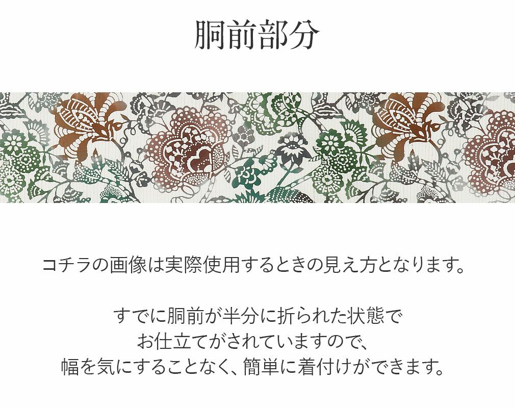 他の画像を見る 《お仕立て上り・送料込》【最短日お届け】お稽古や小紋・紬・色無地などカジュアルな着物に 名古屋帯 黒 深緑 九寸 帯 < 唐草更紗 > 正絹 仕立て上がり 当店特別価格 ¥ 77,000 税込 カートに入れる お気に入りに登録する