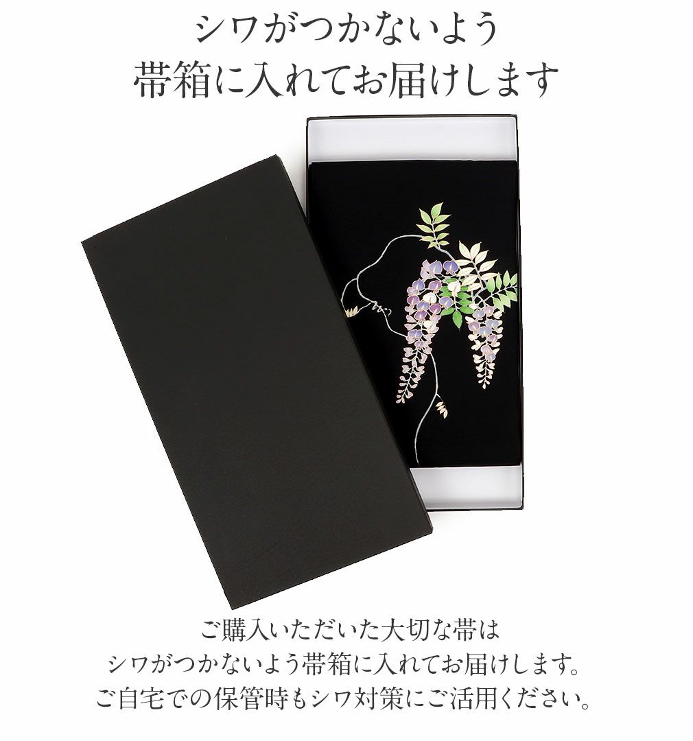 他の画像を見る 《お仕立て上り・送料込》【最短日お届け】お稽古や小紋・紬・色無地などカジュアルな着物に 名古屋帯 九寸 帯 < 藤 > 吉川染匠 手描き友禅 正絹 駒塩瀬 純絹織物 当店特別価格 ¥ 104,500 税込 カートに入れる お気に入りに登録する