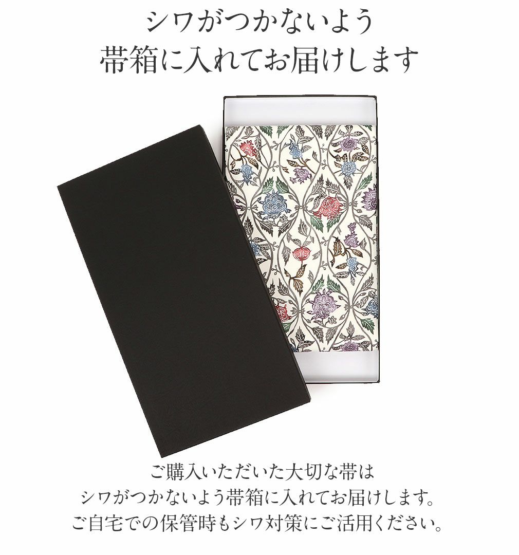 他の画像を見る 《お仕立て上り・送料込》【最短日お届け】お稽古や小紋・紬・色無地などカジュアルな着物に 名古屋帯 九寸 帯 < 花唐草 >大島紬 当店特別価格 ¥ 66,000 税込 カートに入れる お気に入りに登録する