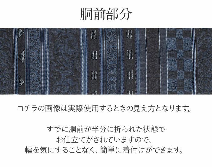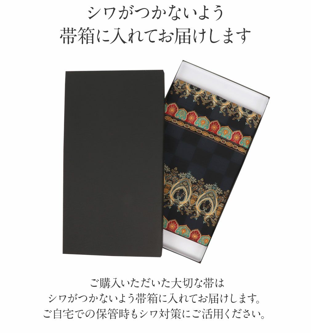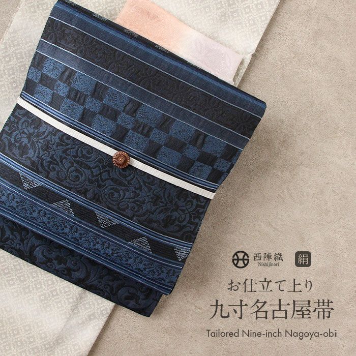 他の画像を見る 《お仕立て上り・送料込》【最短日お届け】オールシーズン使える お仕立て上がり名古屋帯 名古屋帯 藍染織 紺 黒 唐草 市松 縞 西陣織 大光織物 色無地 小紋 紬 カジュアル用 九寸 仕立て上がり 絹 未使用 新品 オールシーズン 当店特別価格 ¥ 30,800 税込 カートに入れる お気に入りに登録する