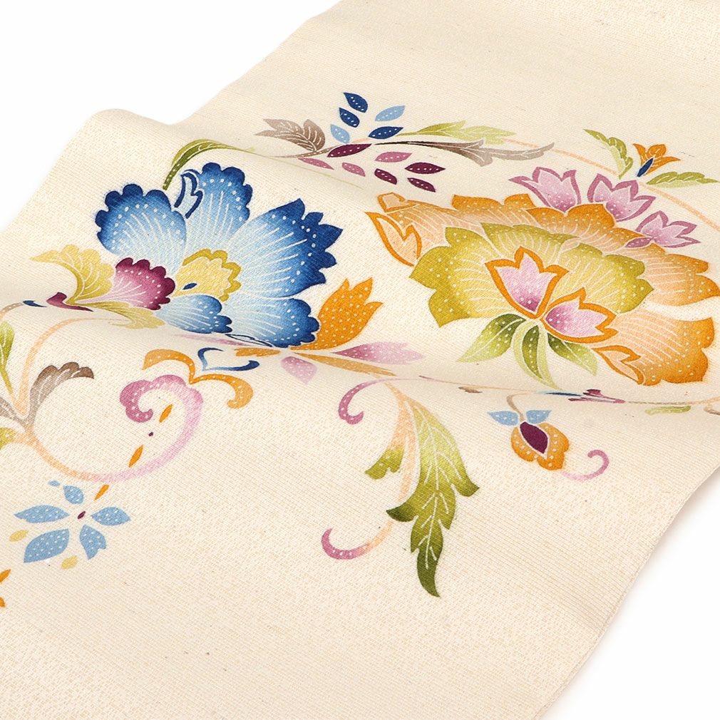 他の画像を見る 《お仕立て上り・送料込》【最短日お届け】お稽古や小紋・紬・色無地などカジュアルな着物に 名古屋帯 生成り 九寸 帯 <更紗> タッサーシルク 正絹 純絹織物 当店特別価格 ¥ 66,000 税込 カートに入れる お気に入りに登録する