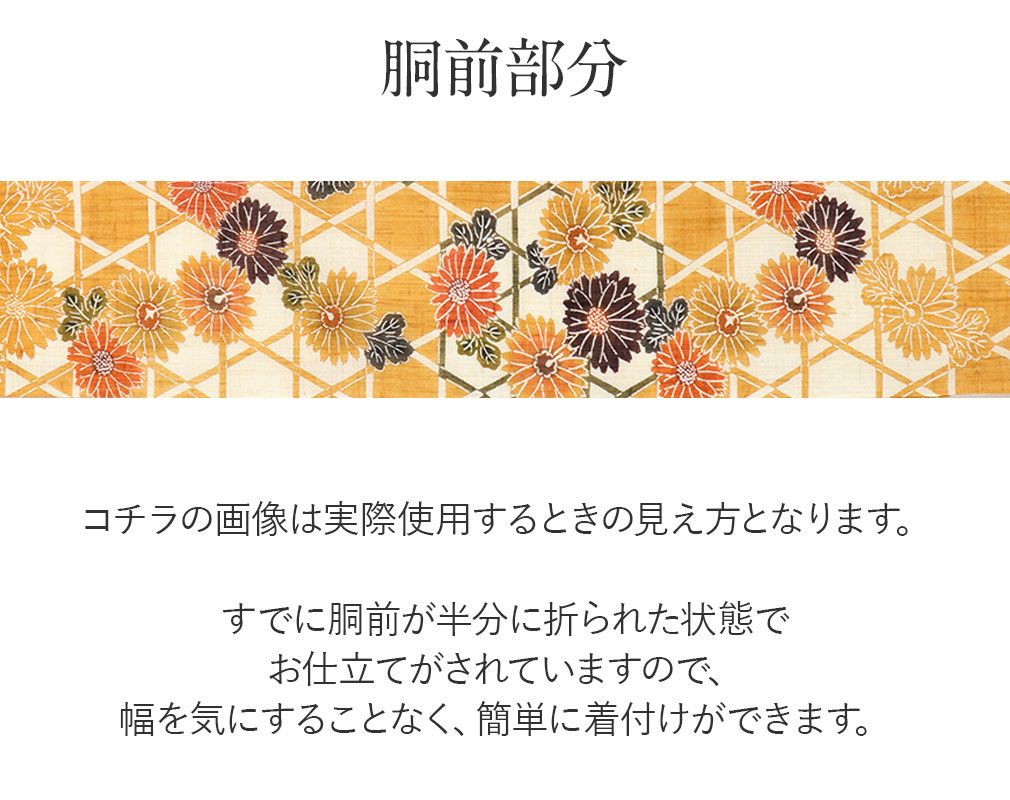 他の画像を見る 《お仕立て上り・送料込》【最短日お届け】お稽古や小紋・紬・色無地などカジュアルな着物に 名古屋帯 九寸 帯 < 丸花紋 菊 > 白木染匠 手描き友禅 正絹 五泉 駒塩瀬 純絹織物 仕立て上がり 日本製 当店特別価格 ¥ 74,800 税込 カートに入れる お気に入りに登録する