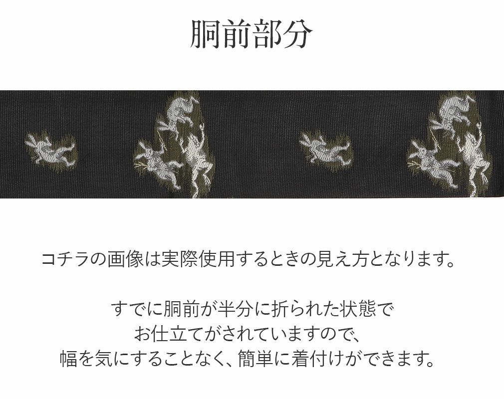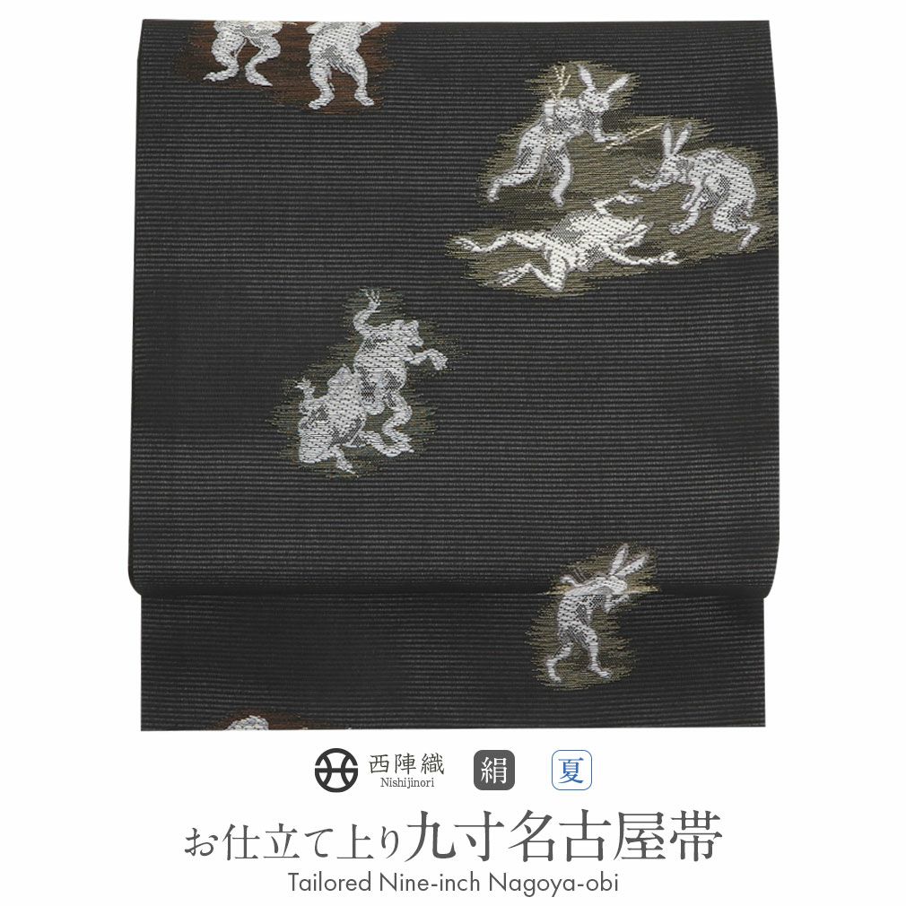 他の画像を見る 《お仕立て上り・送料込》【最短日お届け】お稽古や小紋・紬・色無地などカジュアルな着物に 名古屋帯 黒 九寸 帯 < 鳥獣戯画 > 西陣織 < 沢本織物 > お仕立て上がり 六通柄 正絹 当店特別価格 ¥ 29,700 税込 カートに入れる お気に入りに登録する