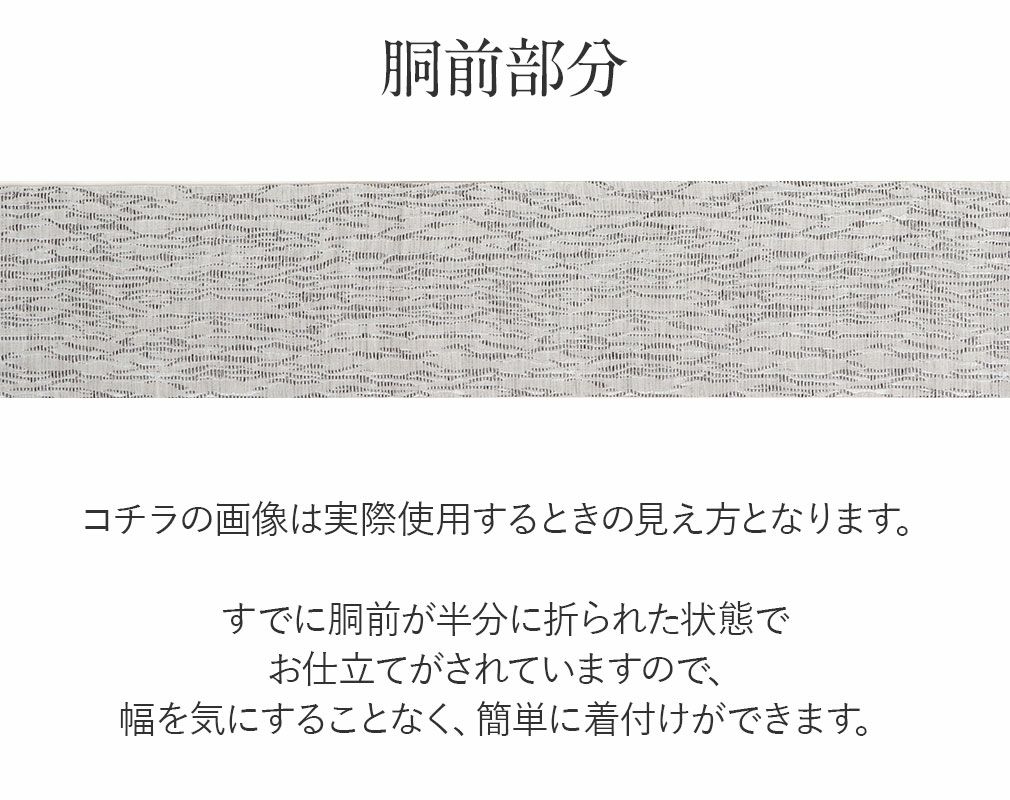 他の画像を見る 《お仕立て上り・送料込》【最短日お届け】お稽古や小紋・紬・色無地などカジュアルな着物に 名古屋帯 帯 九寸 <白/波紋> 織善織物 正絹 お仕立て上がり 六通柄 当店特別価格 ¥ 33,000 税込 カートに入れる お気に入りに登録する