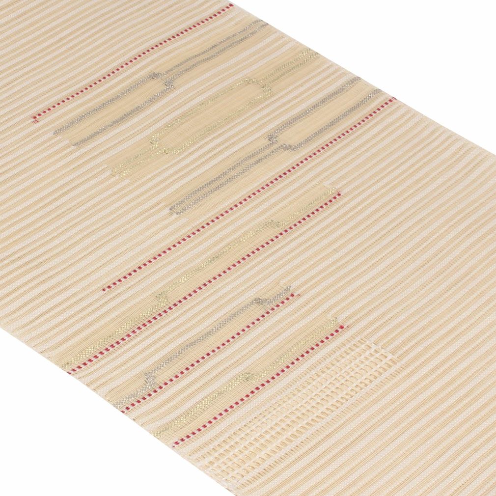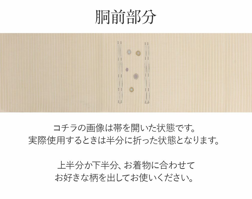 他の画像を見る 年中通して普段着や茶道 華道などのお稽古のお着物に 名古屋帯 博多帯 博多織 帯 八寸 ベージュ 縞 唐花 間道 協和織工場 正絹 仕立て上がり 当店特別価格 ¥ 44,000 税込 在庫切れ (0) 再入荷お知らせ お気に入りに登録する
