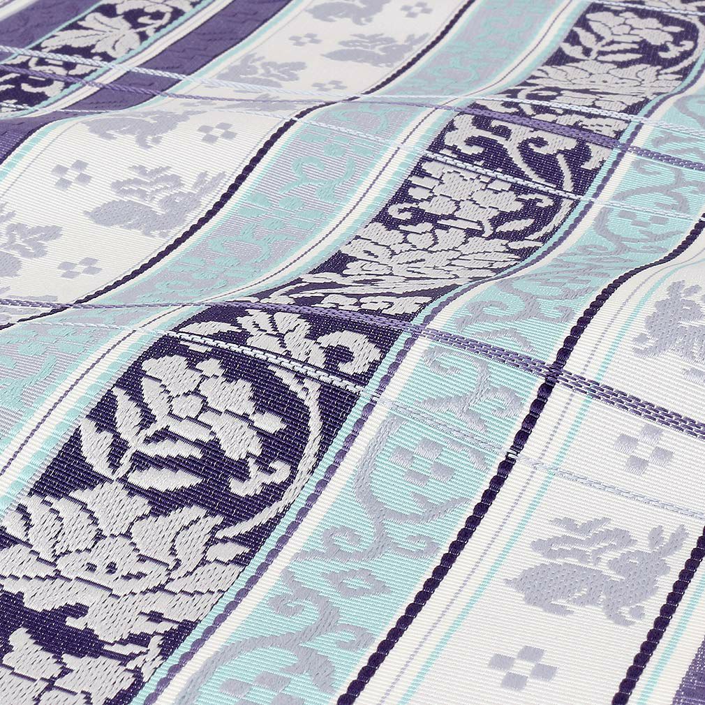 他の画像を見る 年中通して普段着や茶道 華道などのお稽古のお着物に 名古屋帯 博多帯 博多織 帯 八寸 白 水色 洋唐花 ダマスク 協和織工場 正絹 仕立て上がり 当店特別価格 ¥ 44,000 税込 在庫切れ (0) 再入荷お知らせ お気に入りに登録する