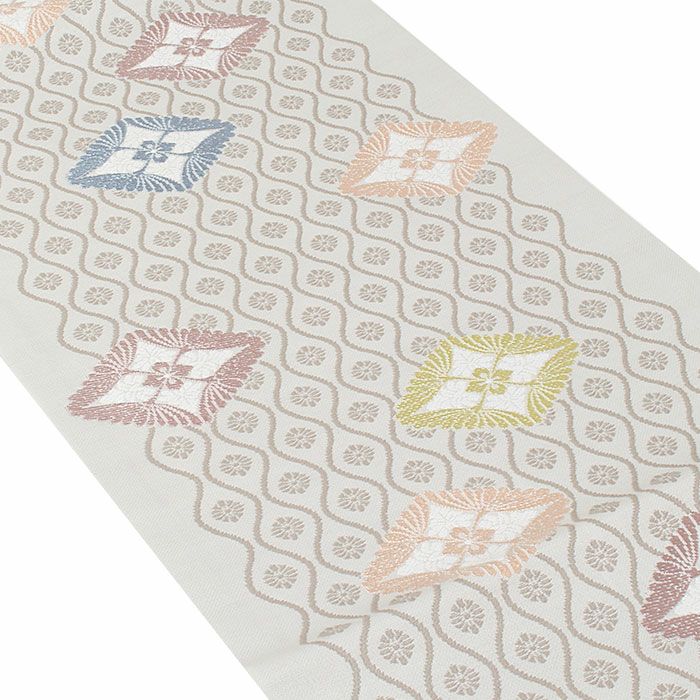 他の画像を見る 《お仕立て上り》【最短日お届け】お稽古や小紋・紬・色無地などカジュアルな着物に 名古屋帯 オフホワイト 九寸 帯 春秋菱華文 西陣織 < 藤原織物 > お仕立て上がり 6通柄 正絹 当店特別価格 ¥ 66,000 税込 (0) カートに入れる お気に入りに登録する