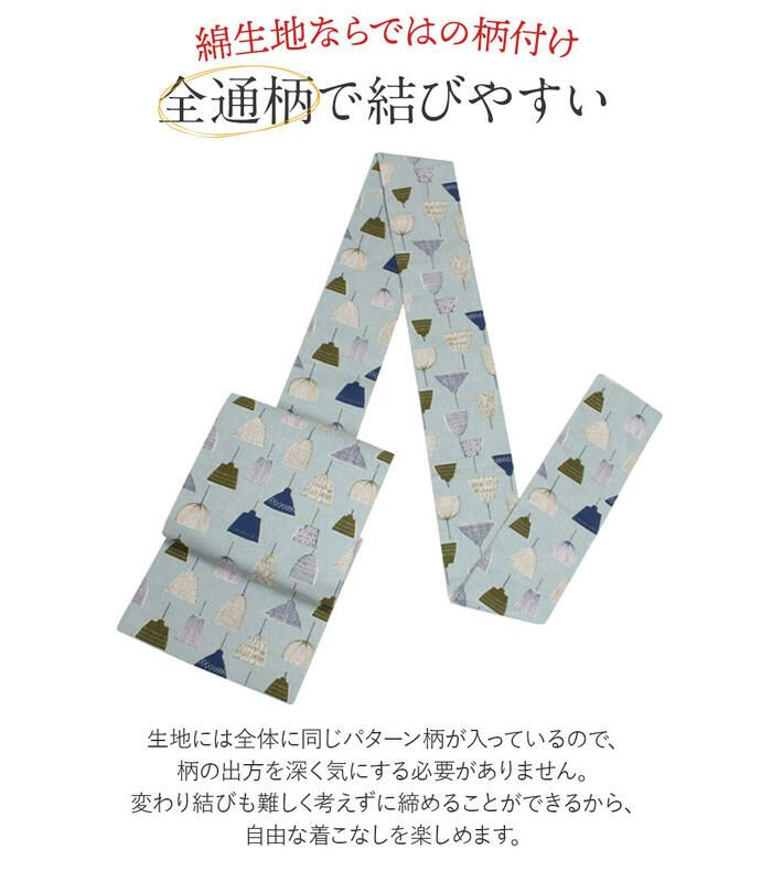《値下げ!現品限り》 綿名古屋帯 お仕立て上り 九寸名古屋帯 カジュアル 名古屋帯 なごや帯 綿 コットン 普段着 着物 帯 レトロ 全通柄