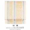 小紋・紬・色無地などのカジュアルなお着物に最適な博多九寸名古屋帯です。 数ある博多織の中でも、組合のさらなる厳しい検査に合格した博多織製品のみ付けられる 経済産業大臣の指定を受けた【伝統的工芸品の証】を認められている逸品です。 何千本もの経糸、横糸を使って織りなす本場筑前博多織の美しさを堪能していただけます。 絹100%なので、締めやすく帯崩れしにくいため、締め心地は抜群です。 博多織独特の絹鳴りと正絹ならではの柔らかな光沢を楽しめる逸品です。