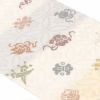 アウトレット 名古屋帯 青 白 薄黄 九寸 帯 < 縞に宝尽くし > 西陣 橋本テル織物 唐織 正絹 仕立て上がり 全通柄