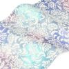 名古屋帯 青 水色 赤紫 唐花 紅型調 大島紬 酒井守 普段用 九寸 仕立て上がり 絹 未使用 新品 春 秋 冬