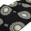 届いてすぐに使える、お仕立て上がりの九寸名古屋帯です。 京都西陣で織り上げられた、西陣証紙のついた確かな品質。 黒地に映える万華鏡のようなデザインは、唐織で繊細に表現され、金糸が煌めく様はまさに芸術作品。 上品な帯ですのでコーディネートしやすく、 小紋や紬、色無地、御召などの着物に最適です。 帯は伝統工芸の西陣織にて仕立てられており、染められた糸を複雑に織って模様を作るので、完成までに多数の工程があり、とても手間暇がかかる高級絹織物です。 こうして丁寧に織られた生地は、先染めしてから織っているので、一般的な染色法の後染めより丈夫でシワになりにくいのが特徴です。 絹の帯は光の当たり方で絹特有の柔らかな光沢が反射し、高級感あふれる美しい帯の質感がお楽しみいただけます。 しなやかな手触りと締め心地の良さを兼ね備え、正絹特有の柔らかな光沢をもつ逸品です。 仕立てはお太鼓結びのしやすい名古屋仕立て。胴前がすでに半分に折られた状態ですので、帯結びが苦手な方でも締めやすく、お稽古事にも最適な帯です。 西陣織の意匠こもった深みのある柄行きが、後ろ姿のお太鼓も胴前も凛とした着姿を演出してくれるでしょう。 ぜひご自身の着物コーディネートに取り入れていただきたい名古屋帯です。
