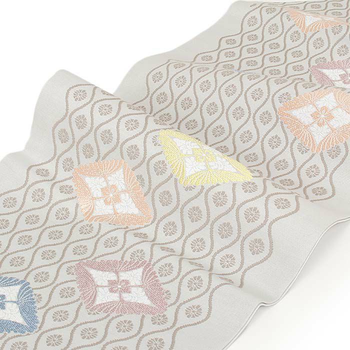 立涌 / 菱華紋 春、秋、冬といつでもお締めいただける柄です。帯締めや帯揚げとのコーディネートで季節感を出されるのがおすすめです。