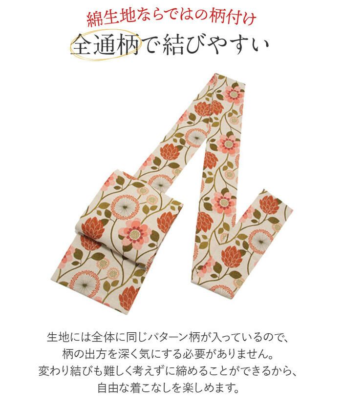 《値下げ!現品限り》 綿名古屋帯 お仕立て上り 九寸名古屋帯 カジュアル 名古屋帯 なごや帯 綿 コットン 普段着 着物 帯 レトロ 全通柄