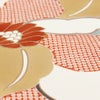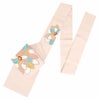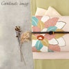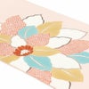 届いてすぐに使えるお仕立て上がりの塩瀬の名古屋帯で、小紋や紬、色無地、街着などカジュアル着物に最適です。 シンボルとなる大花が、えんじ、水色、カラシなど色とりどりで可愛らしさがありながら、落ち着いた色味を使用していますので上品なイメージもあり、年齢問わずお使いいただけます。 また所々に金彩で輝きを施すことでシンボルを上品に引き立てています。 薄ピンク地は濃い色身のお着物に合わせるとパッと映えて粋な着こなしを楽しめます。 こちらの塩瀬名古屋帯は糸の密度が高い厚地の織物で、しっとりした重みのある生地で風合いが良く、しなやかな結び上がりが特徴の逸品です。 絹の帯は光の当たり方で絹特有の柔らかな光沢が反射し、高級感あふれる美しい帯の質感がお楽しみいただけます。 仕立てはお太鼓結びのしやすい名古屋仕立てですので、帯結びが苦手な方でも締めやすく、お茶席やお稽古事にも最適な商品です。