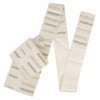 届いて直ぐに使える夏用のお仕立て上がりの九寸名古屋帯です。 京都西陣で織り上げられ、西陣織の証紙が付いた品質確かな逸品。 アイボリーの地に縞模様を織り込んだ格調高い名古屋帯です。 絽織の透け感が涼し気にうつり、夏の装いを優雅に演出します。 付下げから小紋や紬などのカジュアルな装いにピッタリの九寸名古屋帯、 お茶席などお友達とのお出掛けに合わせてご利用ください。 本商品は絹糸で織られ、しなやかで手触りも良く通気性に優れ、6月から8月までご使用できます。 柄もたれ先から前腹まで続いている柄付けですので、帯結びが苦手な方でも、着物初心者の方でも気軽に締めて頂けます。