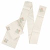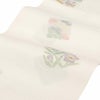 届いて直ぐに使える夏用のお仕立て上がりの九寸名古屋帯です。 京都西陣で織り上げられ、西陣織の証紙が付いた品質確かな逸品。 アイボリーの地に四角に小花や千鳥を織り込んだ格調高い名古屋帯です。 絽織の透け感が涼し気にうつり、夏の装いを優雅に演出します。 付下げから小紋や紬などのカジュアルな装いにピッタリの九寸名古屋帯、 お茶席などお友達とのお出掛けに合わせてご利用ください。 本商品は絹糸で織られ、しなやかで手触りも良く通気性に優れ、6月から8月までご使用できます。 柄もたれ先から前腹まで続いている柄付けですので、帯結びが苦手な方でも、着物初心者の方でも気軽に締めて頂けます。