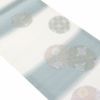 届いてすぐに使える、お仕立て上がりの夏名古屋帯です。 京都西陣で織り上げられた、西陣証紙のついた確かな品質。 爽やかな白と薄青の縞模様に、吉祥文様などの丸紋が描かれた、古典的でありながらモダンな雰囲気も持ち合わせたデザインです。 上品な帯ですのでコーディネートしやすく、 またさっくりとした涼し気な印象の帯ですので、初夏・盛夏・晩夏の小紋や紬、色無地、御召などの着物に最適です。 帯は伝統工芸の西陣織にて仕立てられており、染められた糸を複雑に織って模様を作るので、完成までに多数の工程があり、とても手間暇がかかる高級絹織物です。 こうして丁寧に織られた生地は、先染めしてから織っているので、一般的な染色法の後染めより丈夫でシワになりにくいのが特徴です。 絹の帯は何といっても柔らかな風合いで、高級感あふれる美しい帯の質感がお楽しみいただけます。 しなやかな手触りと締め心地の良さを兼ね備え、正絹特有の柔らかな光沢をもつ逸品です。 仕立てはお太鼓結びのしやすい名古屋仕立て。胴前がすでに半分に折られた状態ですので、帯結びが苦手な方でも締めやすく、お稽古事にも最適な帯です。 西陣織の意匠こもった深みのある柄行きが、後ろ姿のお太鼓も胴前も凛とした着姿を演出してくれるでしょう。 ぜひご自身の着物コーディネートに取り入れていただきたい名古屋帯です。