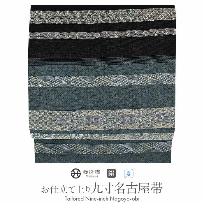 他の画像を見る 《お仕立て上り》【最短日お届け】夏の小紋 紋紗 色無地 御召 などのお着物に 名古屋帯 夏 夏名古屋帯 夏帯 青灰 黒 縞 有職文様 西陣織 三幸 普段用 九寸 仕立て上がり 絹 当店特別価格 ¥ 33,000 税込 カートに入れる お気に入りに登録する