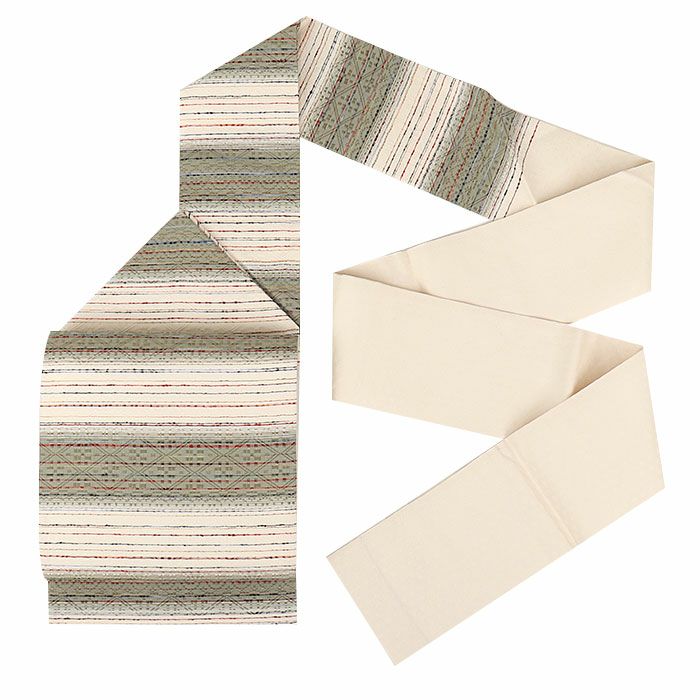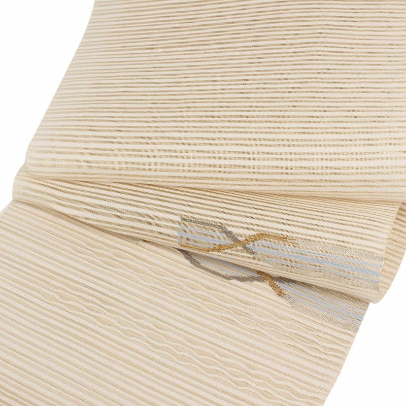 他の画像を見る 《お仕立て上り》【最短日お届け】夏の小紋 紋紗 色無地 御召 などのお着物に 名古屋帯 夏 夏名古屋帯 夏帯 薄グレージュ 白 水色 縞 花唐草 絽 廣部織物 普段用 礼装用 九寸 仕立て上がり 絹 未使用 当店特別価格 ¥ 30,800 税込 カートに入れる お気に入りに登録する