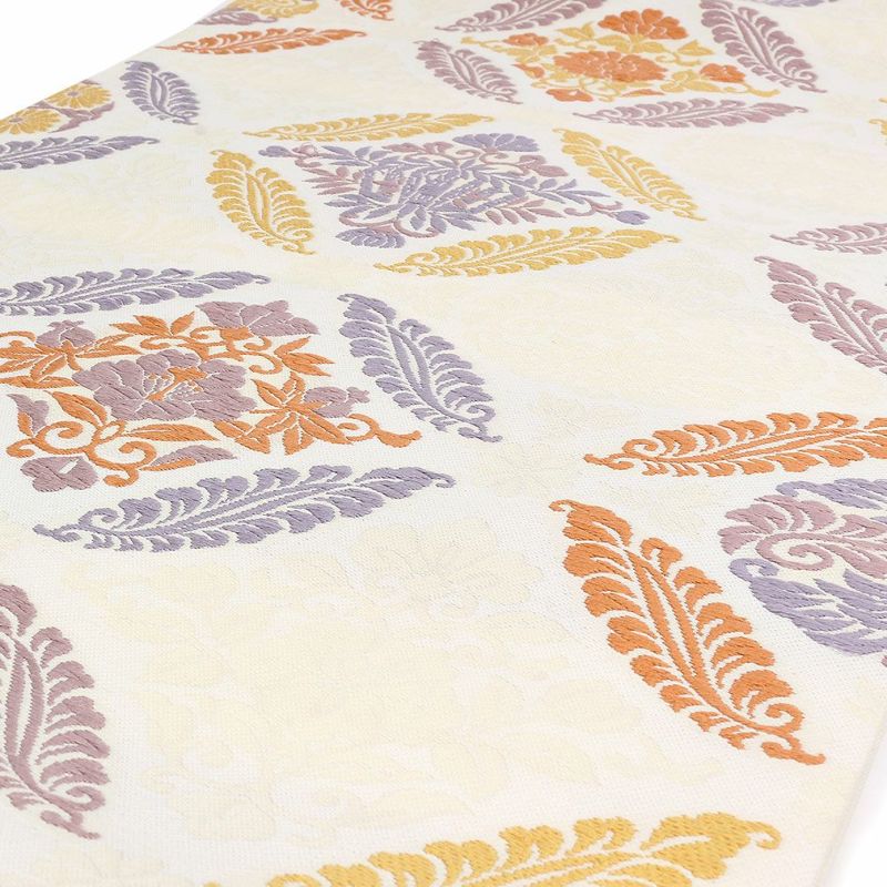 ●実際の商品と同じ色合いに画像修正をしておりますが、環境やモニターの違いにより多少色の違いが出て来ることがあります、ご了承ください。 ●生地の取り方により柄の出方が異なる場合がございます。 ●こちらの帯はすでにお仕立てが済んでいる帯です。 ●お仕立ては『名古屋仕立て』となります。