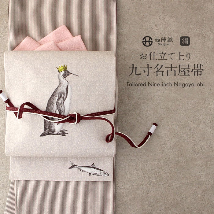 他の画像を見る ≪在庫限り≫ 小紋 紬 色無地 御召 などのお着物に 名古屋帯 灰 グレージュ ペンギン 王冠 酒井守織物謹製 日本製 九寸 仕立て上がり 絹 和あーと 未使用 新品 春 秋 冬 おび なごや帯 和Art 当店特別価格 ¥ 44,000 税込 (0) お気に入りに登録する