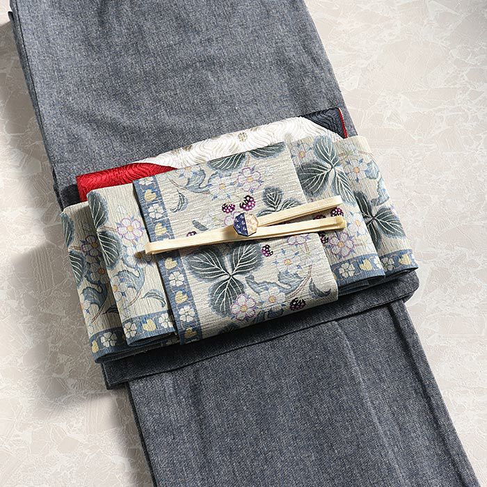 他の画像を見る 【最短日お届け】《召しませ花》小紋などのカジュアルなお着物や夏の着物・単衣に 半幅帯 帯 半巾帯 普段用 薄黄 水色 苺のパンチュール リバーシブル 召しませ花 カジュアル 絹 長尺 日本製 当店特別価格 ¥ 44,000 税込 在庫切れ 再入荷お知らせ お気に入りに登録する
