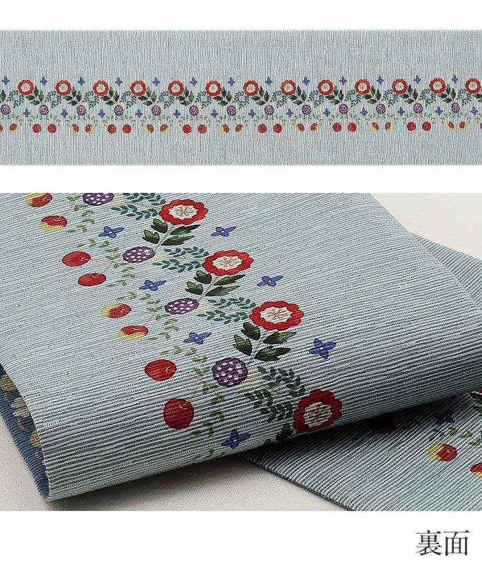 他の画像を見る 年中通して普段着や茶道 華道などのお稽古のお着物に 名古屋帯 博多帯 博多織 帯 八寸 白 水色 洋唐花 ダマスク 協和織工場 正絹 仕立て上がり 当店特別価格 ¥ 44,000 税込 在庫切れ 再入荷お知らせ お気に入りに登録する