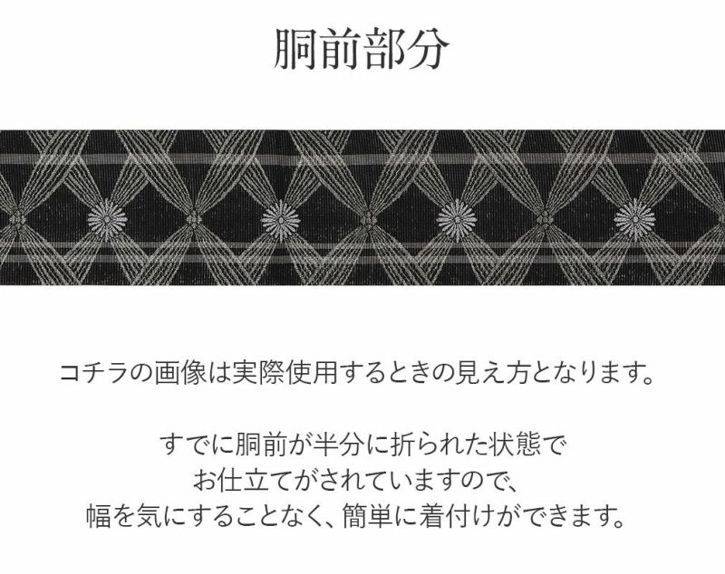 他の画像を見る 【最短日お届け】《博多帯》締めやすく帯崩れしにくい カジュアルなお着物に 博多織 半幅帯 帯 紋織り 博多帯 小袋帯 黒 重ね入子菱 雪輪 長尺 当店特別価格 ¥ 52,800 税込 在庫切れ 再入荷お知らせ お気に入りに登録する