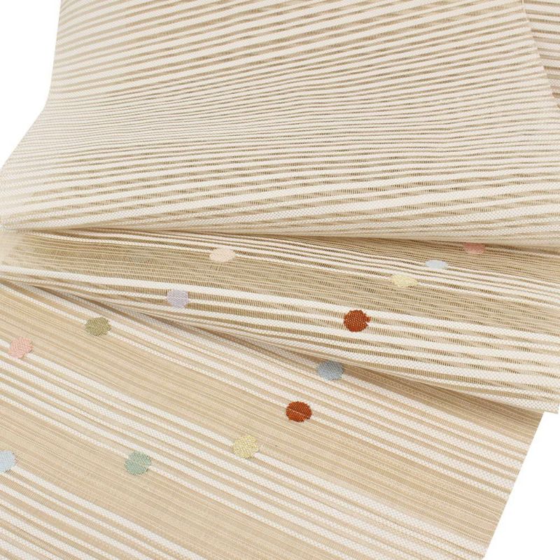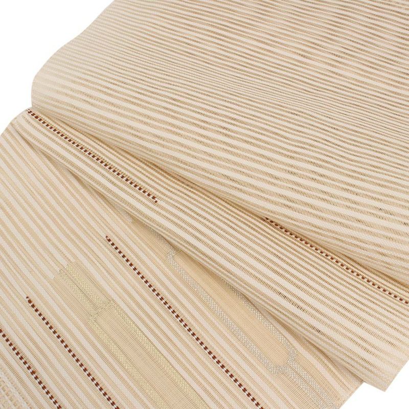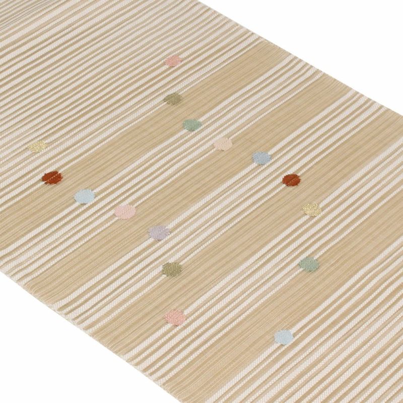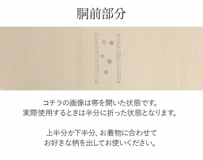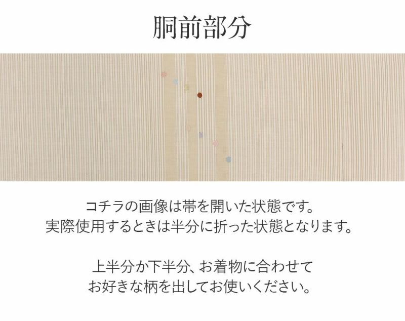 他の画像を見る 年中通して普段着や茶道 華道などのお稽古のお着物に 名古屋帯 博多帯 博多織 帯 八寸 ベージュ 縞 唐花 間道 協和織工場 正絹 仕立て上がり 当店特別価格 ¥ 44,000 税込 在庫切れ 再入荷お知らせ お気に入りに登録する