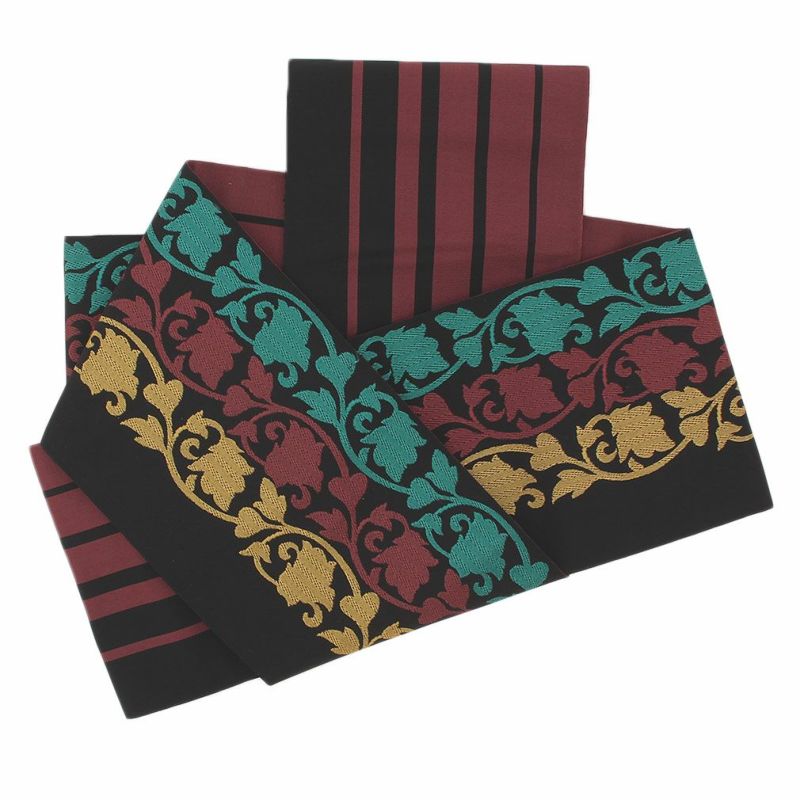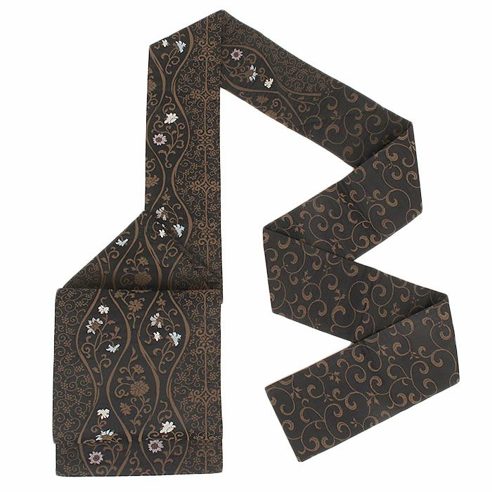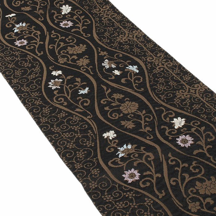 他の画像を見る 小紋 紬 色無地 御召 などのお着物に 名古屋帯 博多帯 博多織 帯 八寸 黒 蔓花 縞 協和織工場 正絹 仕立て上がり 当店特別価格 ¥ 49,500 税込 在庫切れ 再入荷お知らせ お気に入りに登録する